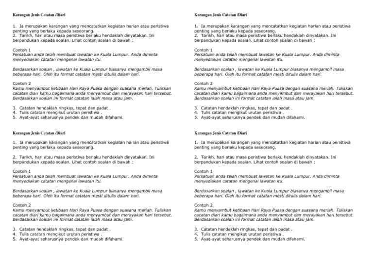 Karangan Catatan Harian L Bm Sk Tahun 4 5 Dan 6 Youtube
