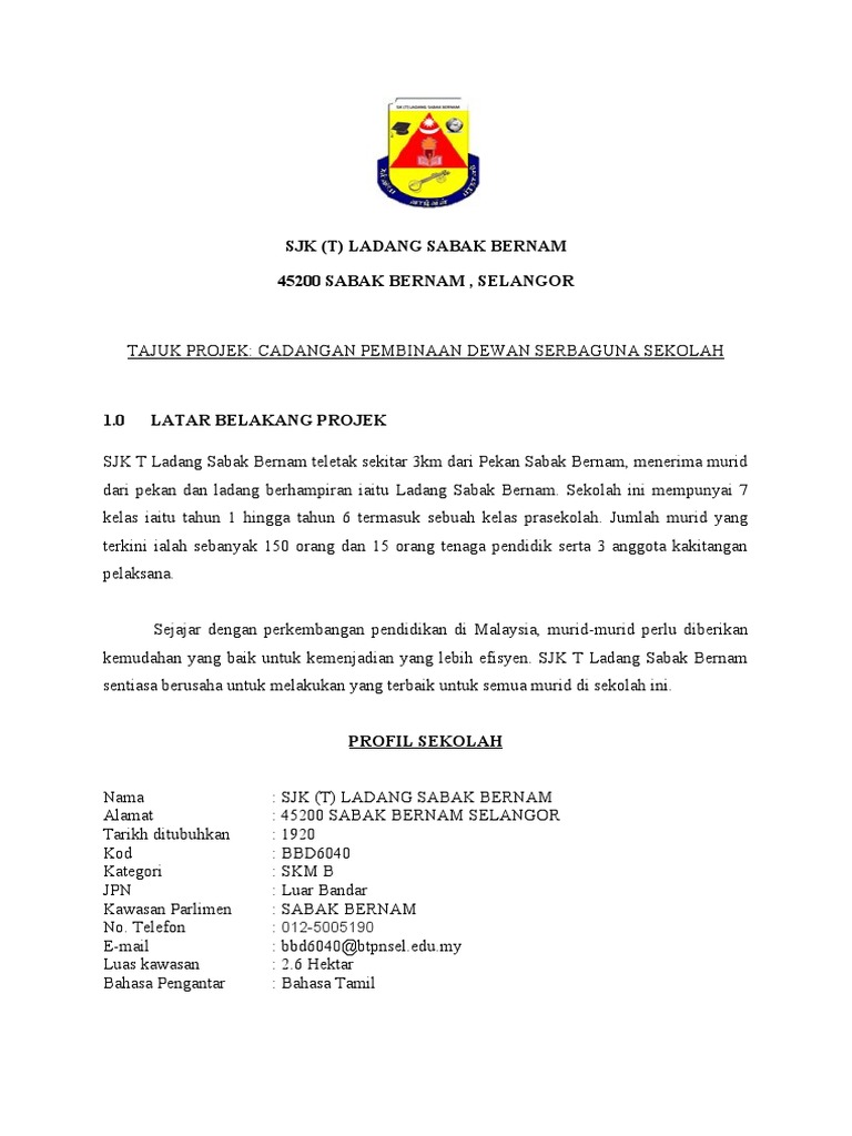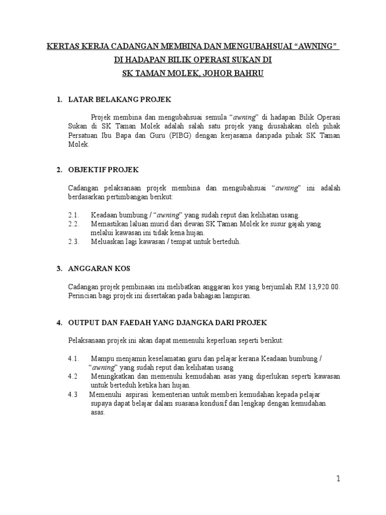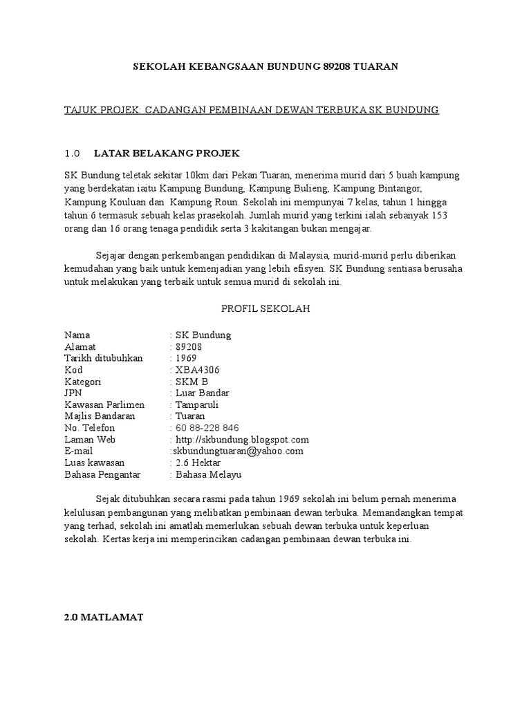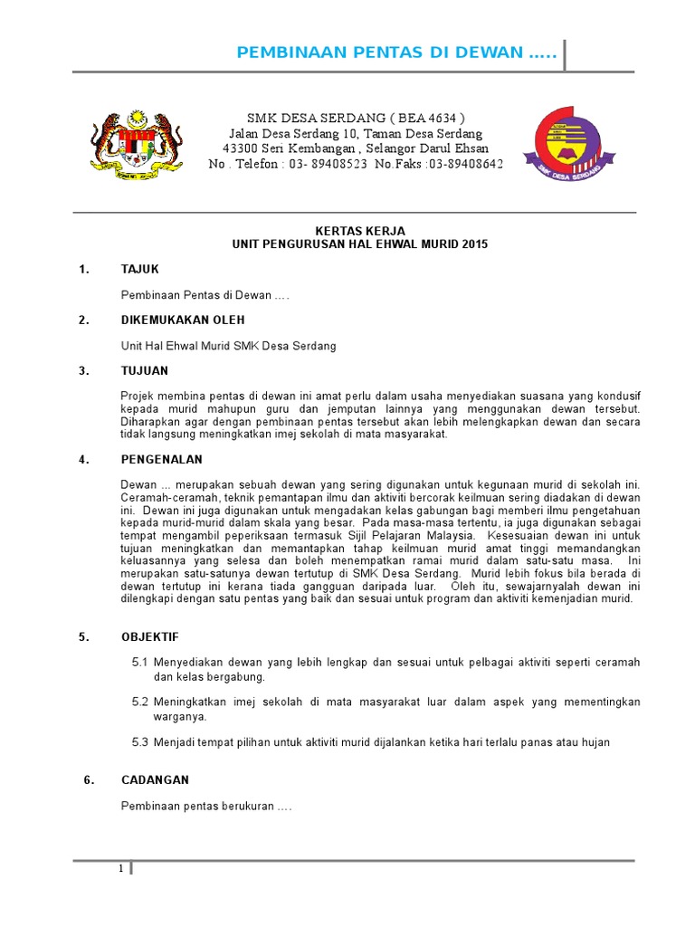 Contoh Kertas Kerja Projek Pembinaan Dewan